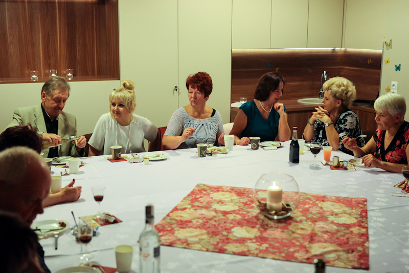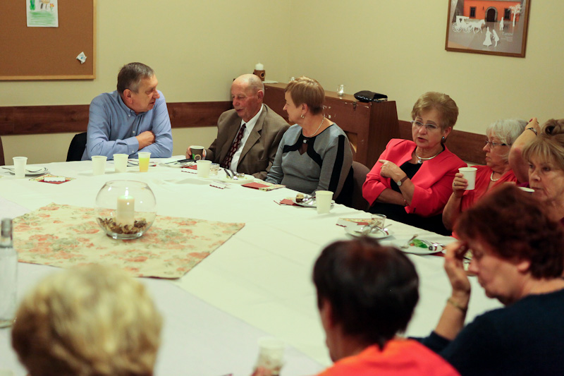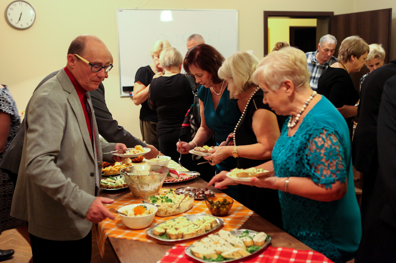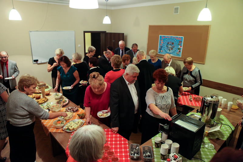 W przerwach seniorzy mogli się posilić: sałatki, kanapeczki, wędlina, a także ciepły barszczyk z krokietem.